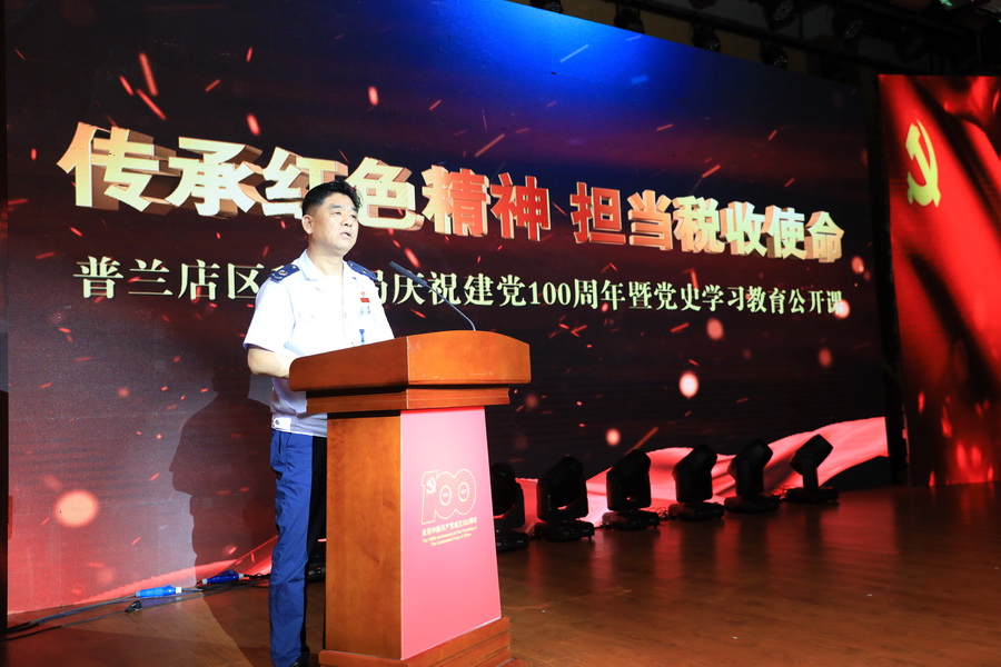 区局庆祝中国共产党成立100周年暨党史学习教育公开课在全场齐声歌唱《没有共产党就没有新中国》中徐徐落下帷幕。精彩的演出与宣讲久久回响在干部职工的耳边、印刻在脑海、铭记在心中,普兰店税务人将传承好党的红色精神,在“争第一”中唱响品牌,在“创唯一”中彰显担当;凝聚起“坚定信念、团结拼搏、无私奉献、开拓创新、精益求精、优质服务、清廉从税”的精神力量,为普兰店区经济社会发展不断迈上新台阶、为推进税收事业高质量发展贡献税务力量