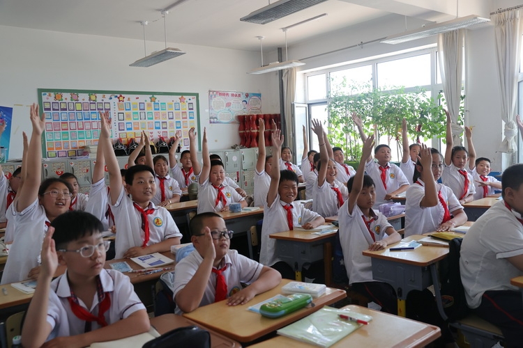 随后,“希望小队”走进班级教室,开启“税法小课堂”,以简明易懂的方式,将税收的概念、作用等税法知识娓娓道来。生动直观的视频短片、创意有趣的互动游戏、深入浅出的知识科普,充分调动了孩子们的热情,大家纷纷举手抢答问题。“工资要交个人所得税!”“消防灭火不需要收费!”“公园和高铁都是公共物品!”孩子们的回答清晰响亮,自信满满,展现着“税务小能手”的风采,获得了一堂干货满满的税费知识“普法大餐”。