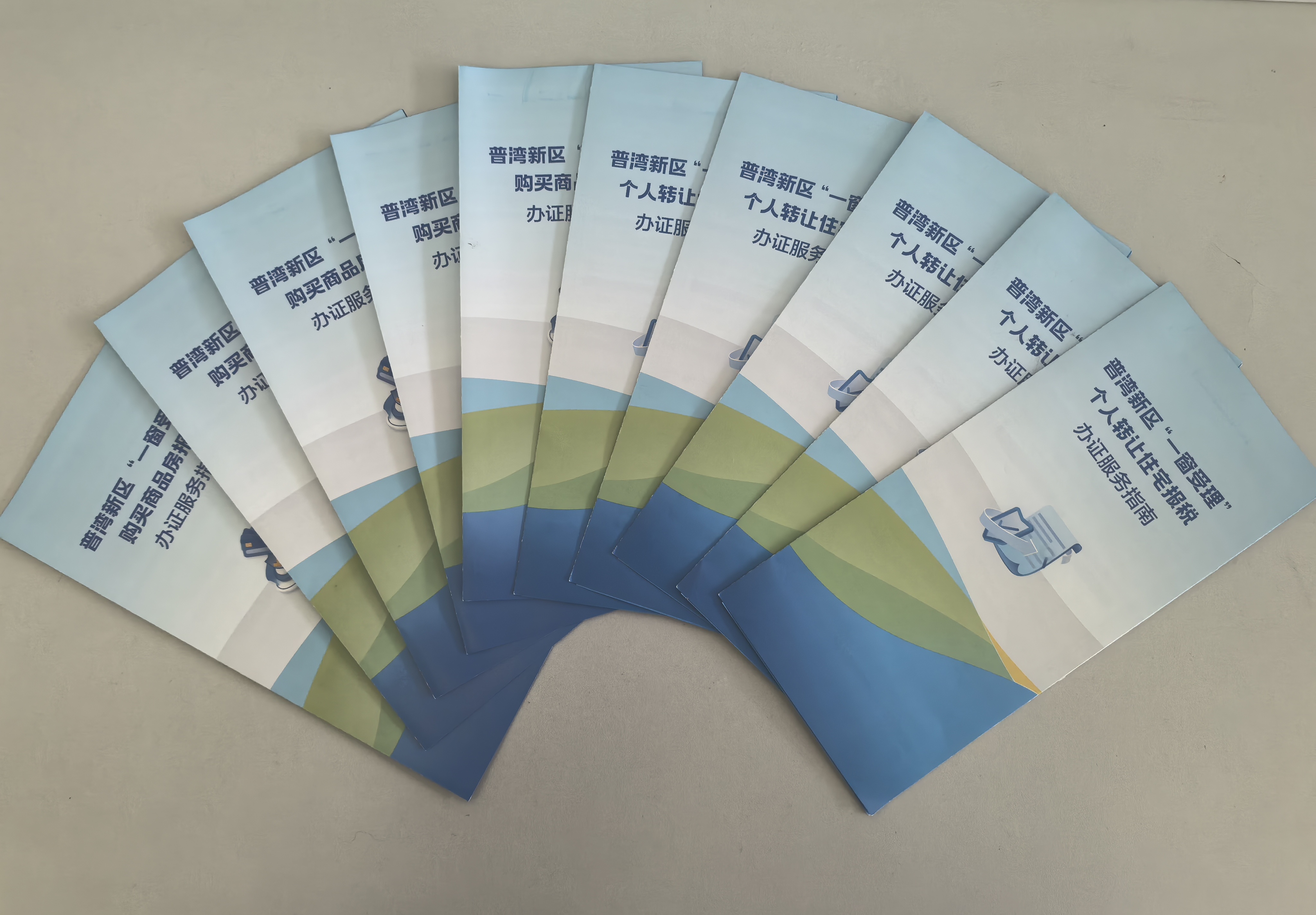 在导税台的显眼位置,整齐摆放着《普湾新区“一窗受理”购买商品房报税办证服务指南》和《普湾新区“一窗受理”个人转让住宅报税办证服务指南》宣传手册,该手册由普湾经济区税务局整理并印发,详细标注了“申报材料、适用税率、收费标准、办公地址及电话”等内容。以纸质宣传资料为载体,能够解决部分纳税人缴费人尤其是老年人对线上信息获取渠道不畅通的问题,使便民服务覆盖更广泛。同时,纸质宣传资料可留存、可传阅,能持续向更多未到现场办理业务的纳税人传递政策资讯,进一步扩大“一窗通办”宣传力度。