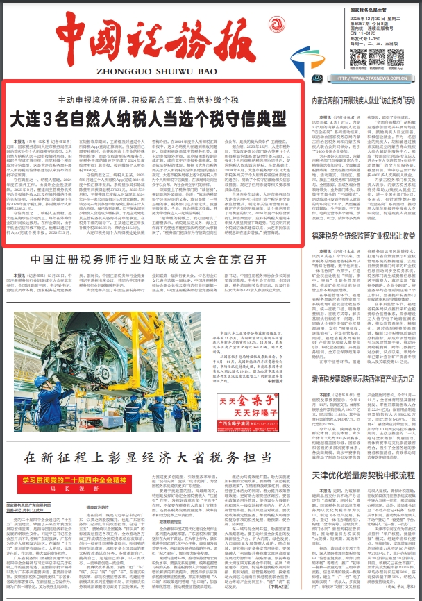 中国税务报:大连3名自然人纳税人当选个税守信典型